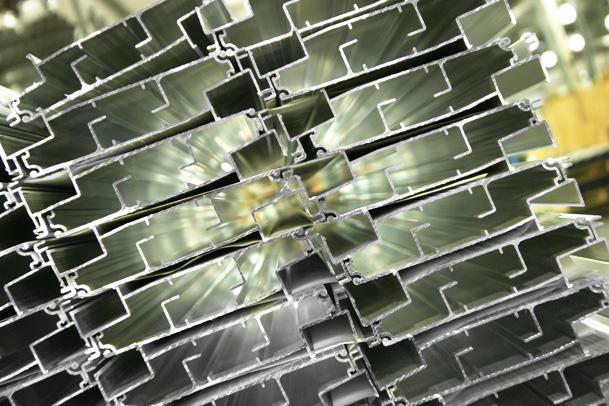 Door components stacked up around the plant. Shot for a series of sales brochures.